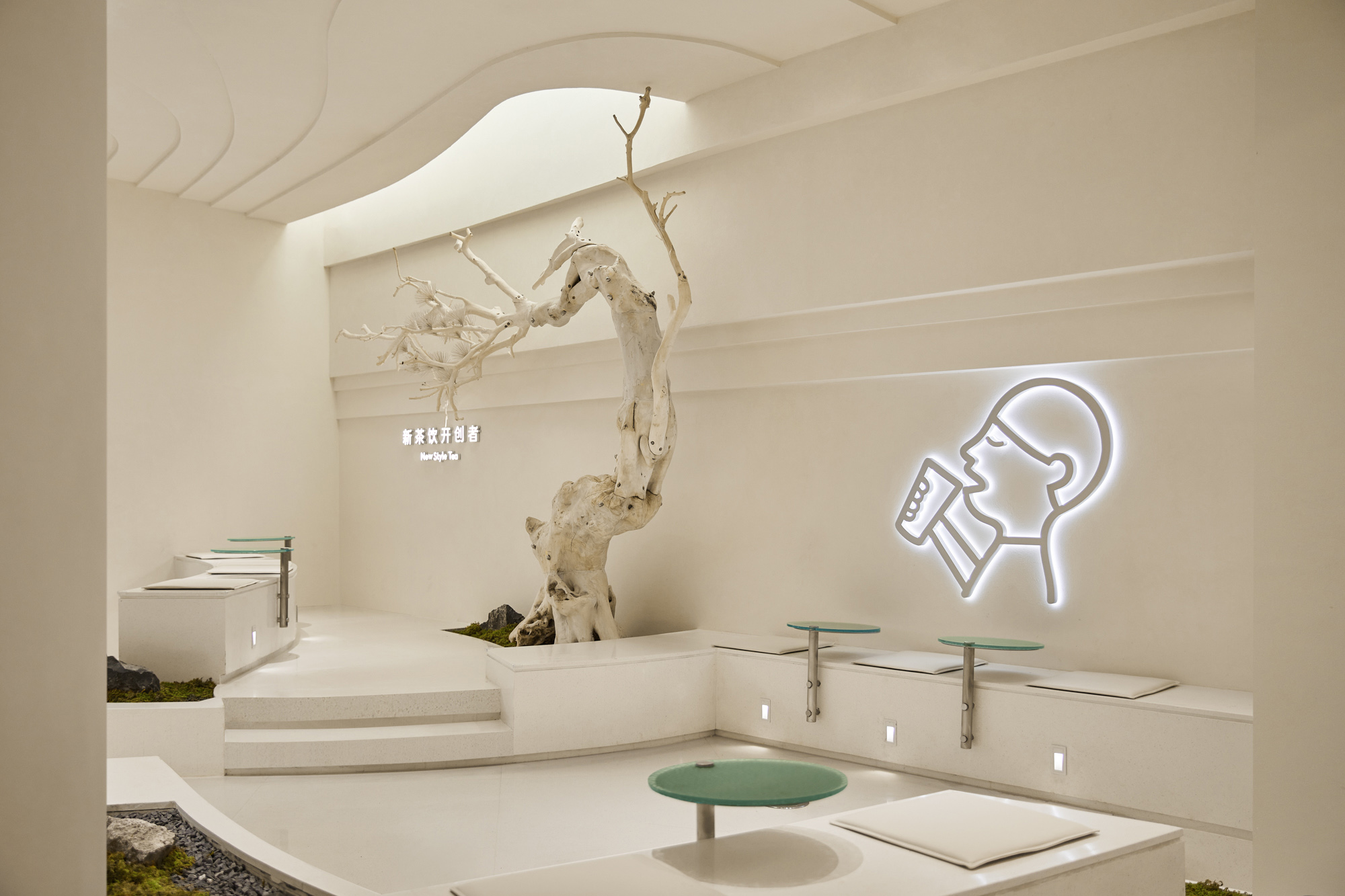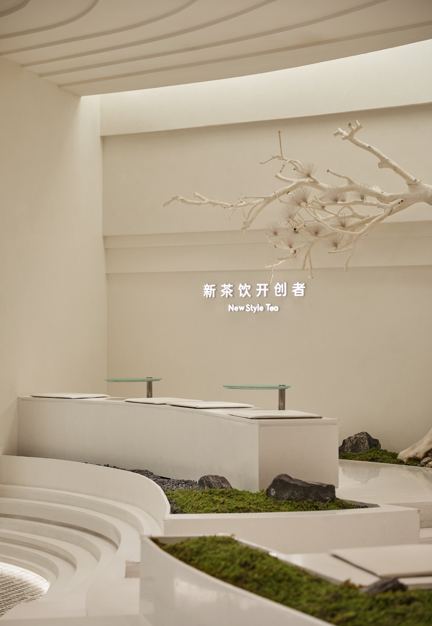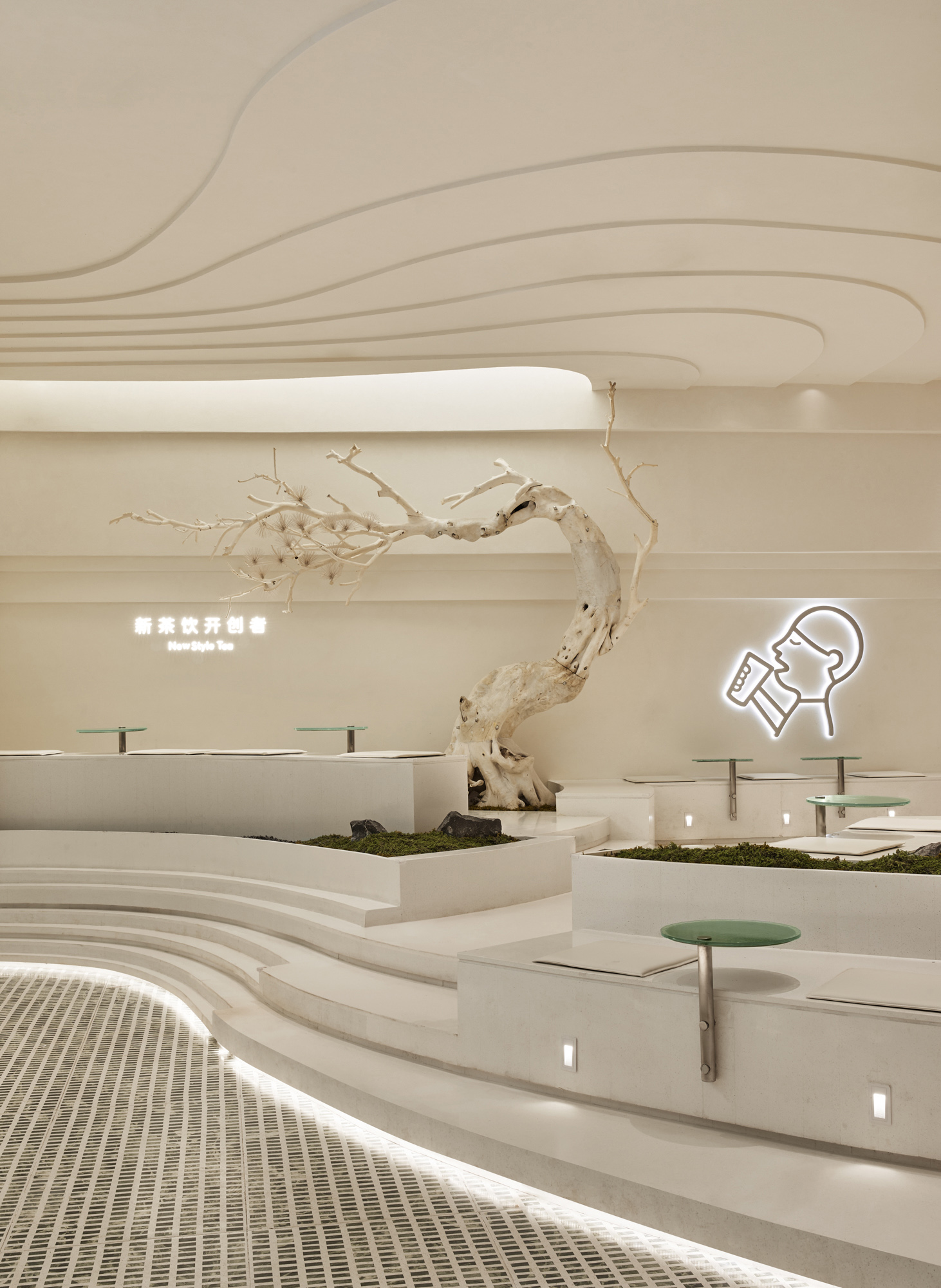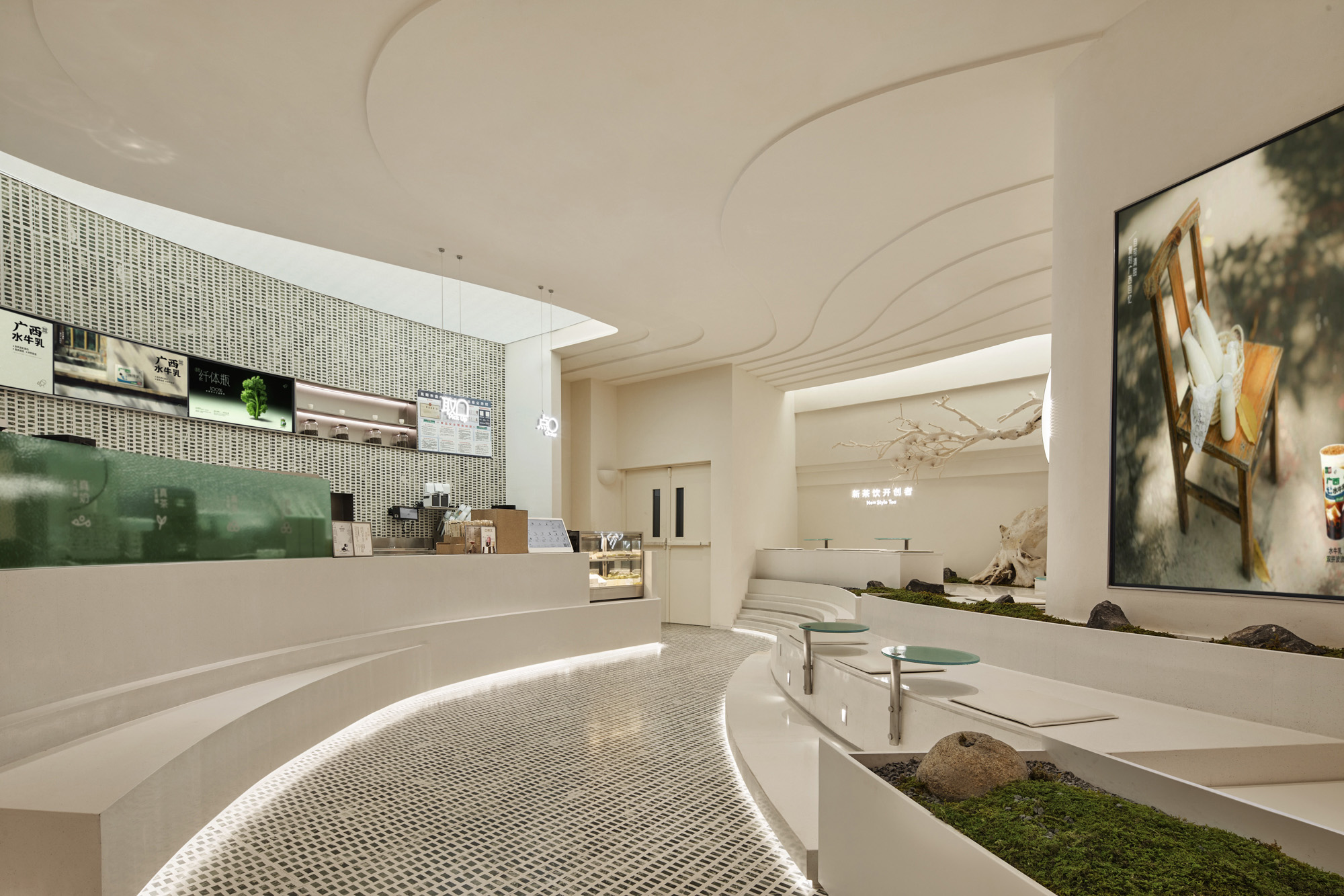 The project is located in Kunming, Yunnan. We extracted the form of Yunnan tea mountains and ingeniously integrated the transformation and application of tea trees into it, making the entire spatial form three-dimensional and multi-dimensional, rich and flowing. Being immersed in it feels like strolling among tea mountains, blending seamlessly with nature. At the same time, extending the indoor guest area outward creates a more dynamic space, providing tea customers with a fun and comfortable resting place. Here, the beauty of locality and Eastern minimalism is showcased, exuding a unique cultural and poetic charm.