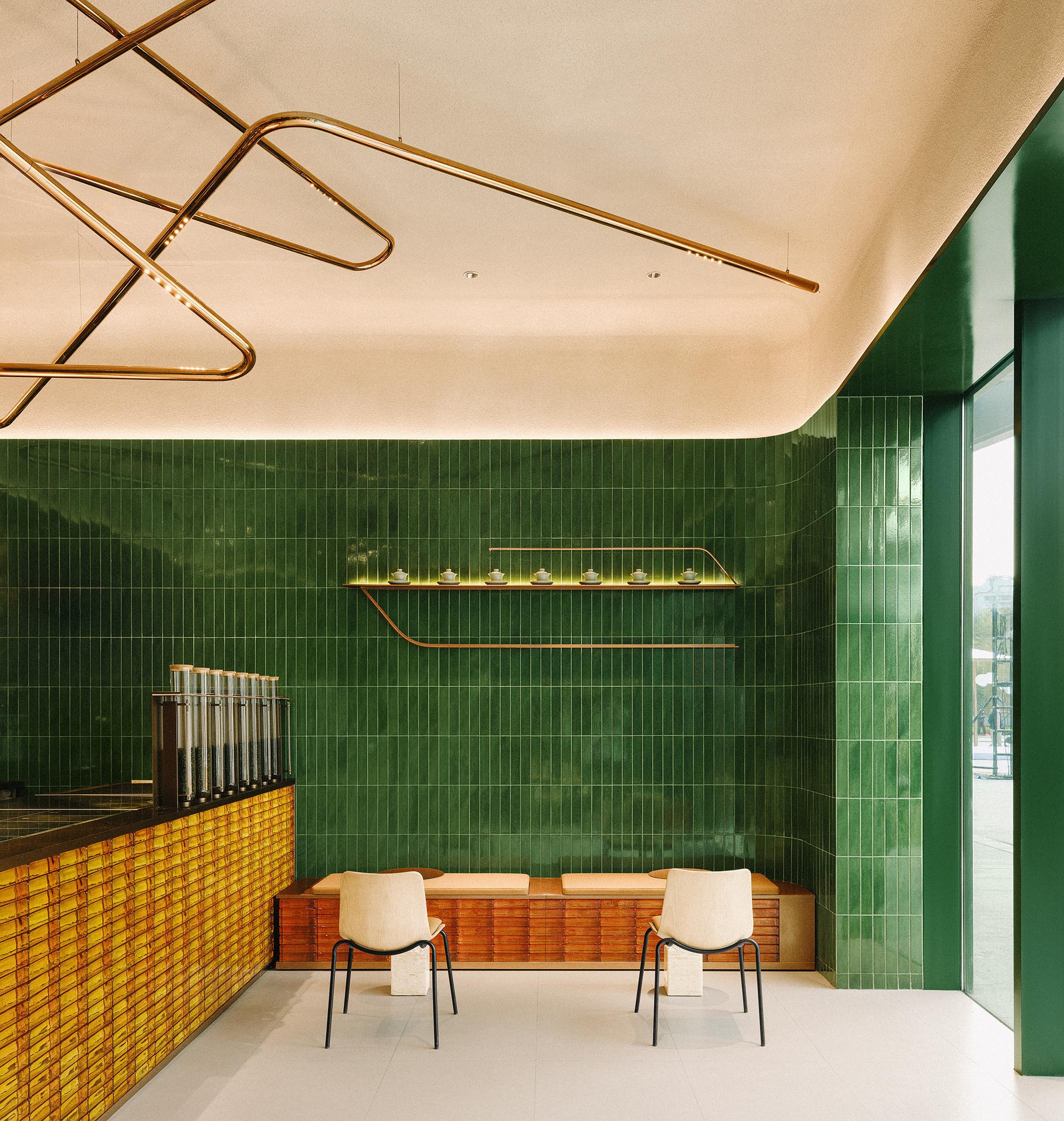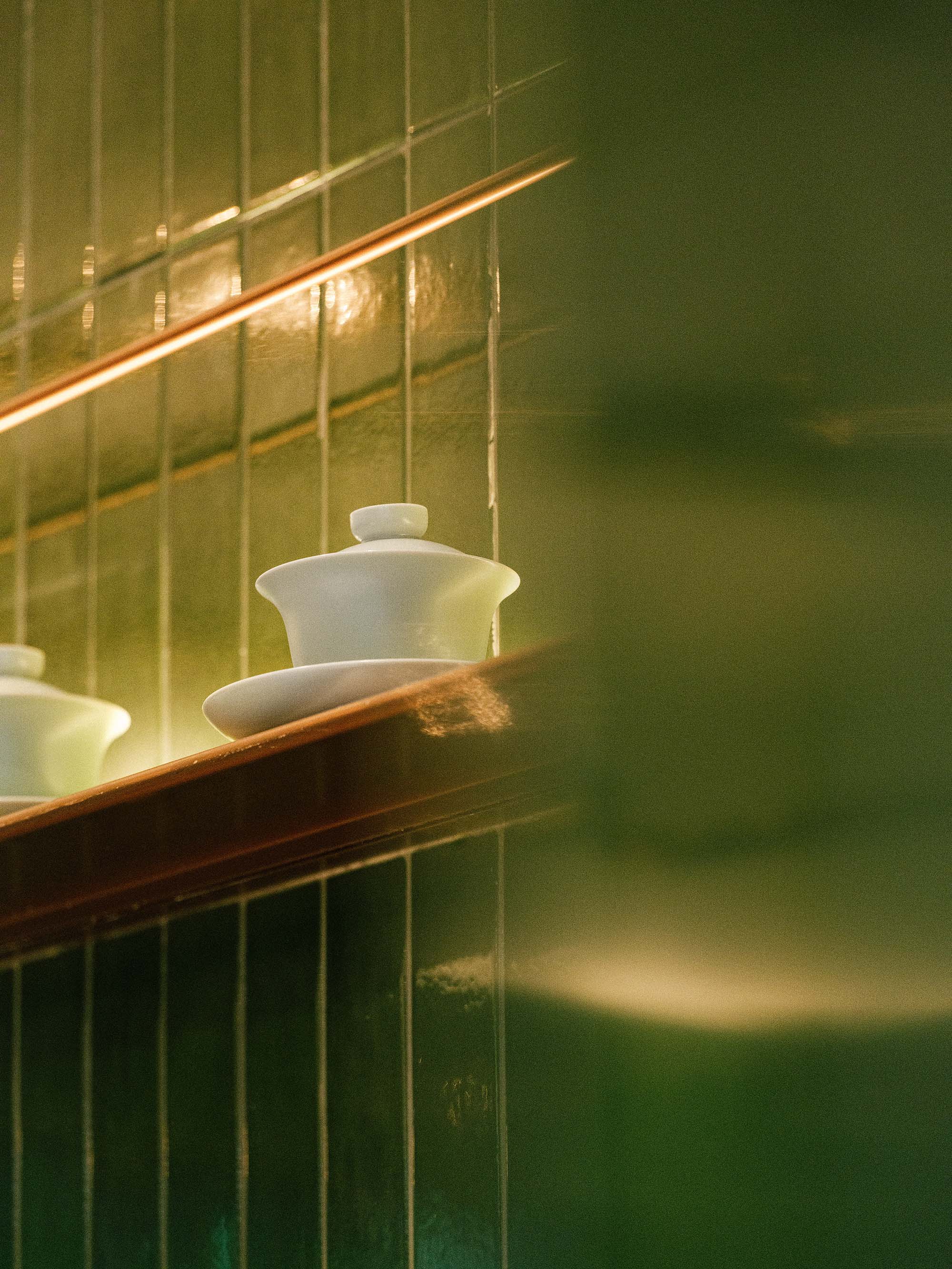 Under the Guangzhou Tower, in the room of Langcai, following the various changes of tea color, we hope to transform and express the unique glaze color and texture of "Guangzhou Intangible Cultural Heritage - Cloisonn é Enamel" in the space. Combining linear element collision, a diverse tea drinking space with richness, memorability, and historicity is formed.