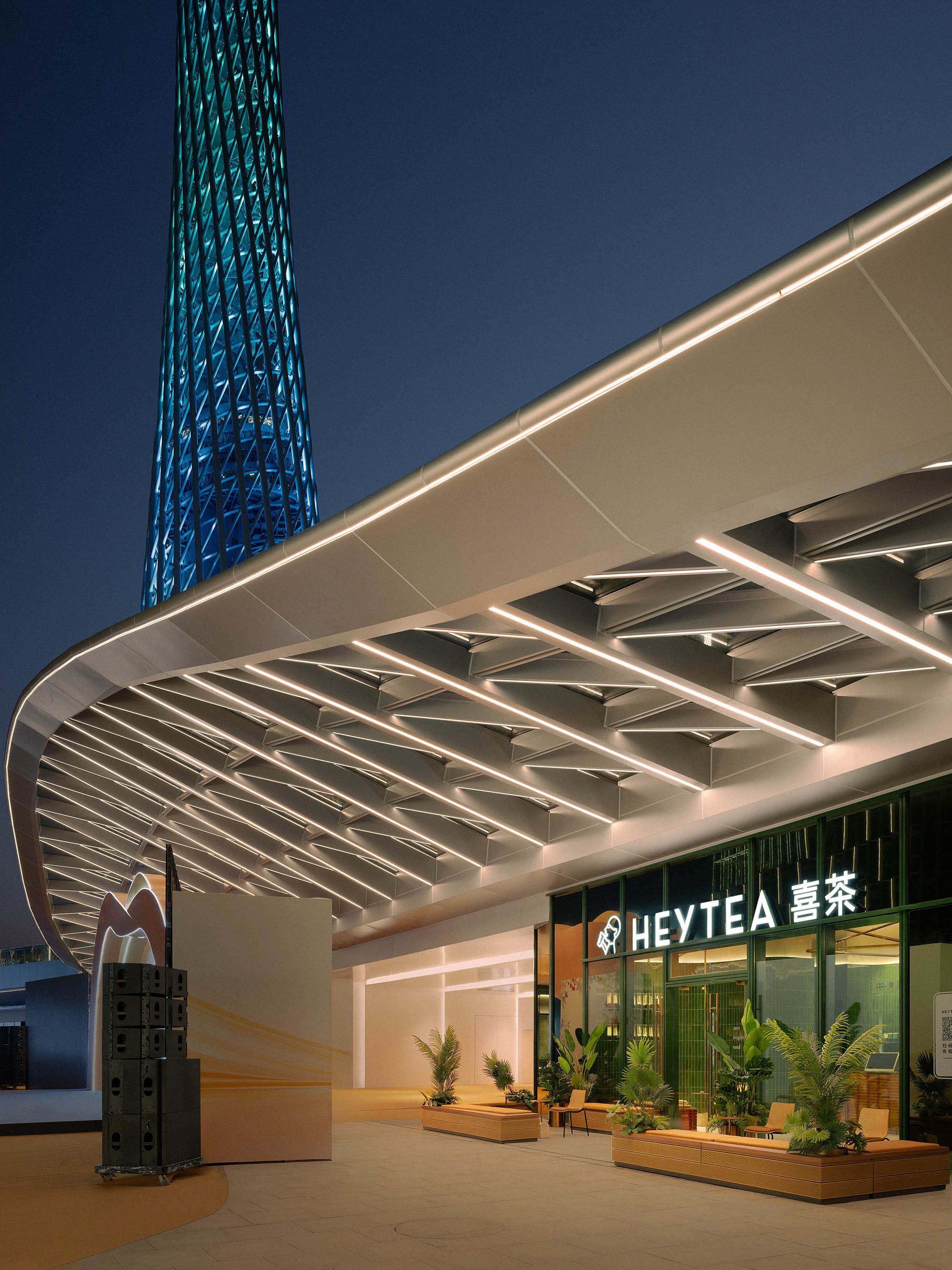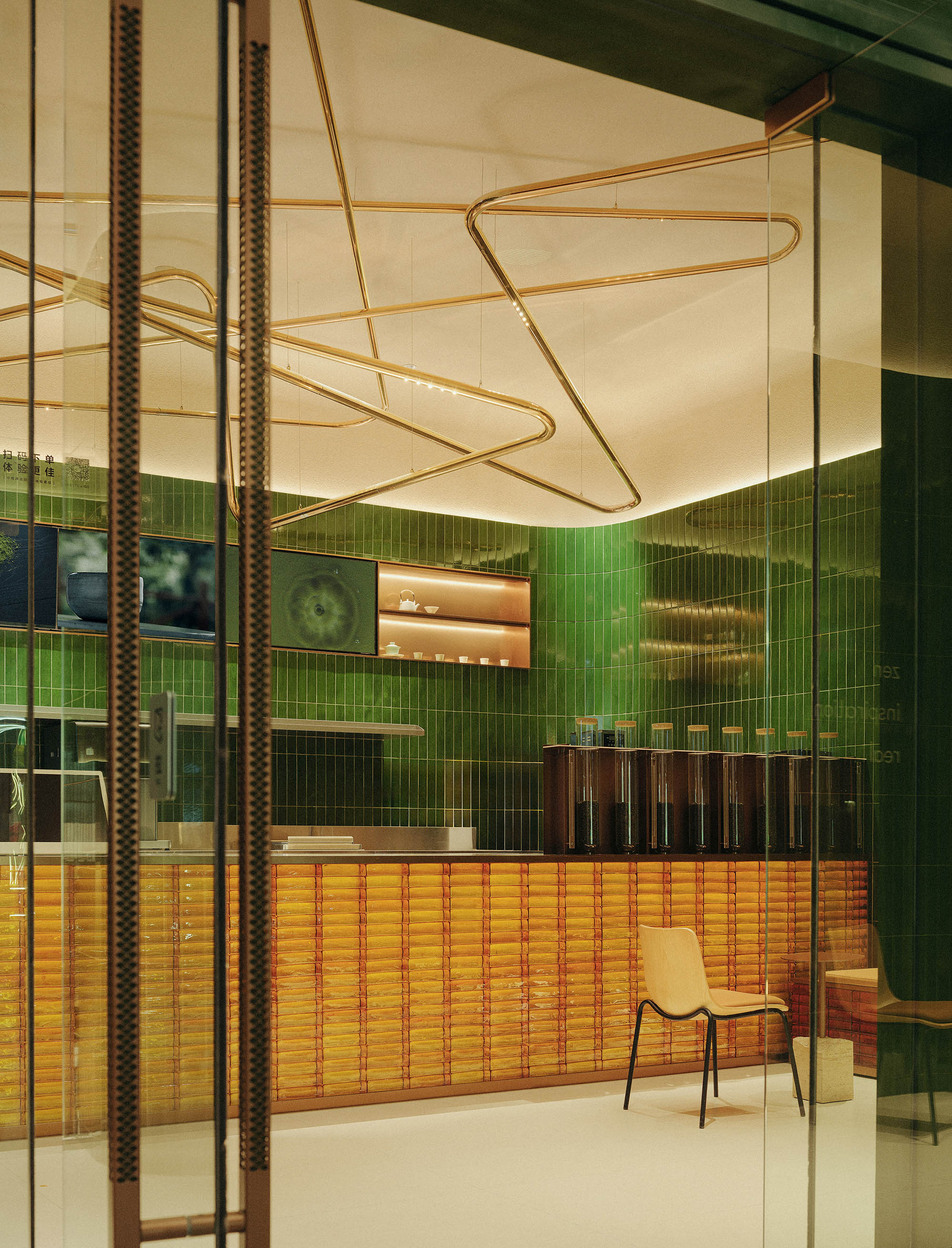 广州塔下,以琅彩为室,循着茶色的百般变化, 我们希望将「广州非遗 · 掐丝珐琅」的特有釉彩与质感在空间中进行转化表达。结合线性元素碰撞,形成具有丰富性,记忆性性的和历史性的多元化茶饮空间。