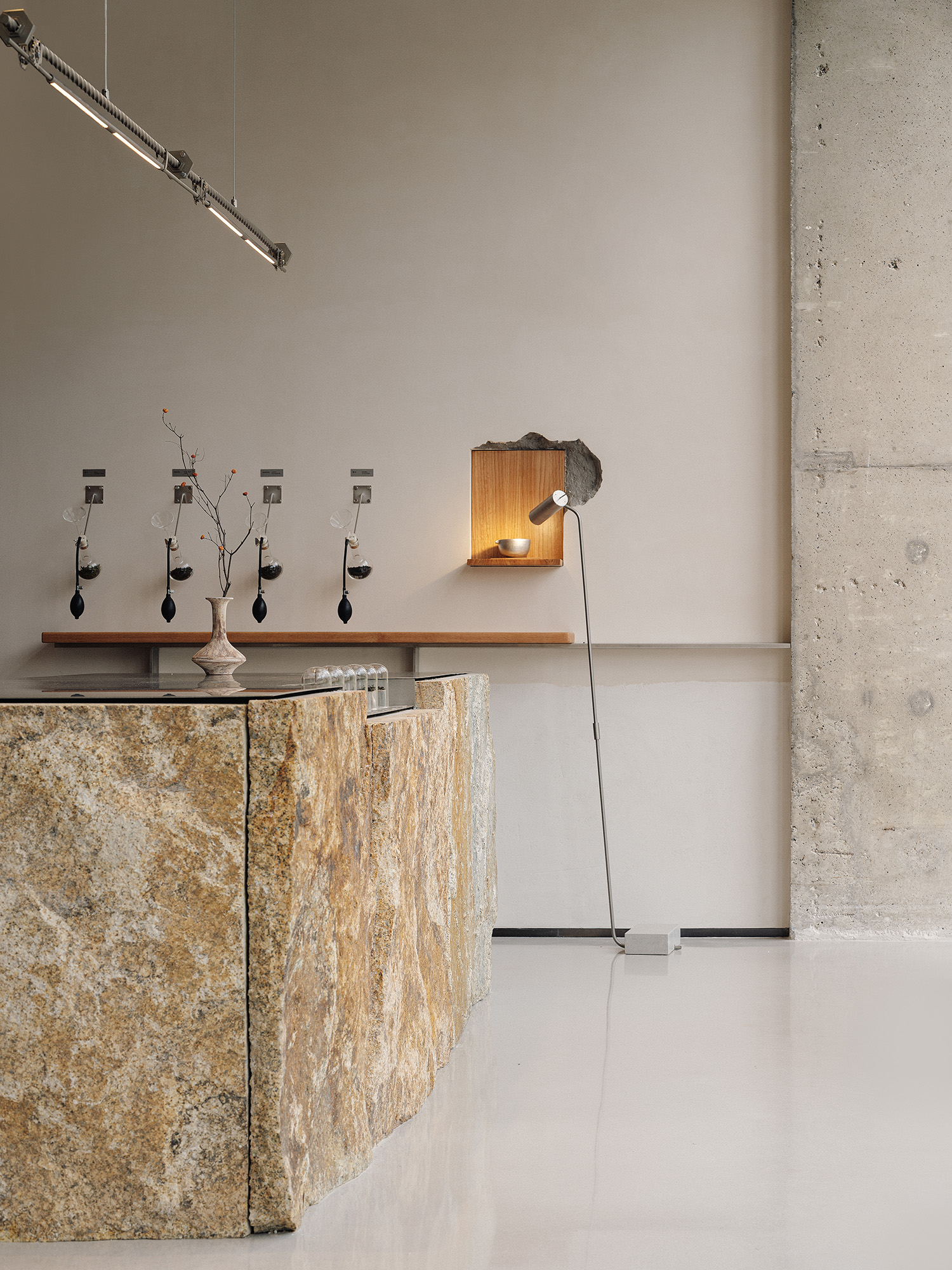 柳州既有工业时代留下的力量感,同时被山水所包裹,刚与柔在这长期并存。空间从这一关系出发,呈现一种由硬向柔的转化过程——如同茶叶经火候淬炼后回甘,烘焙中温度与时间共同作用后的成形。