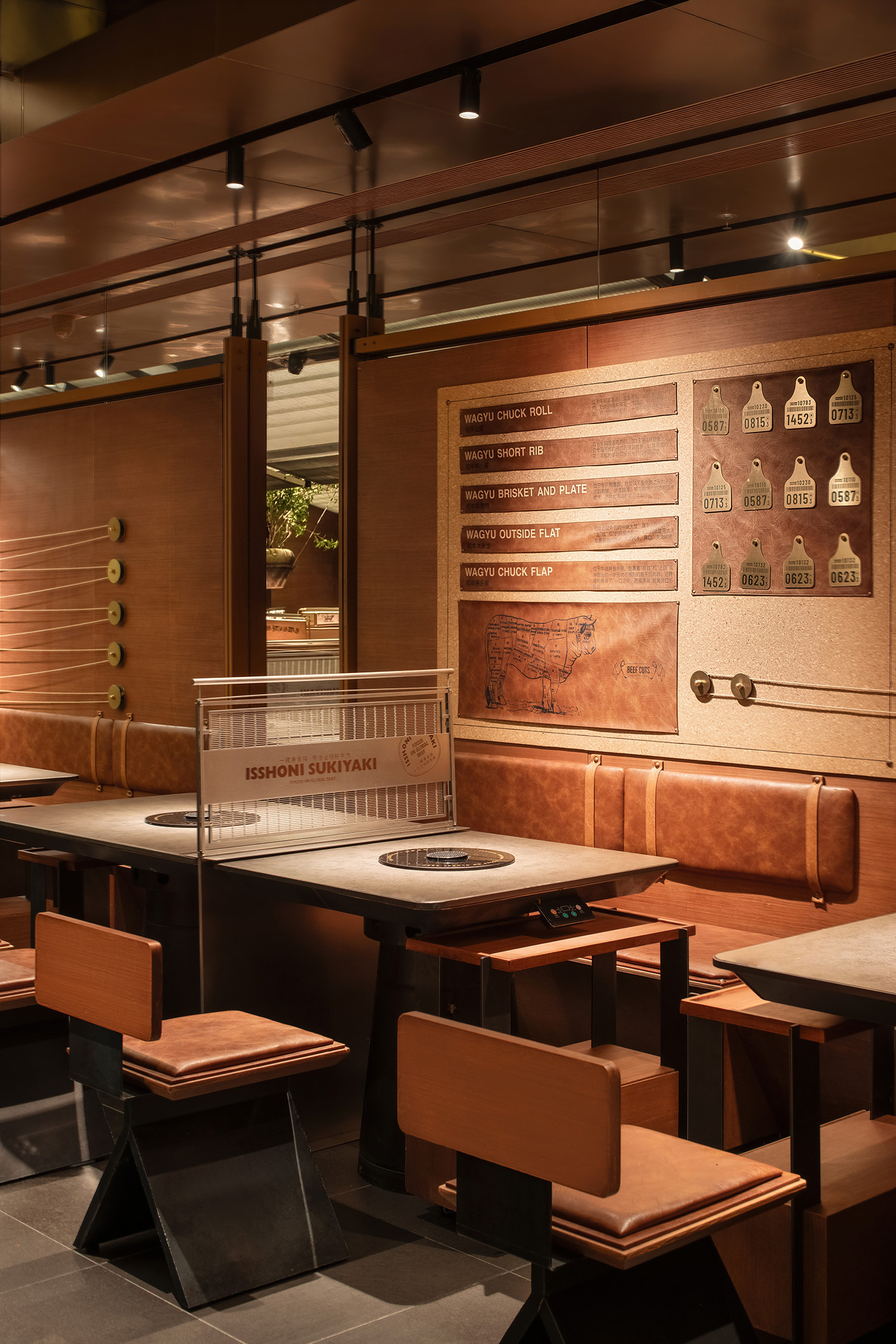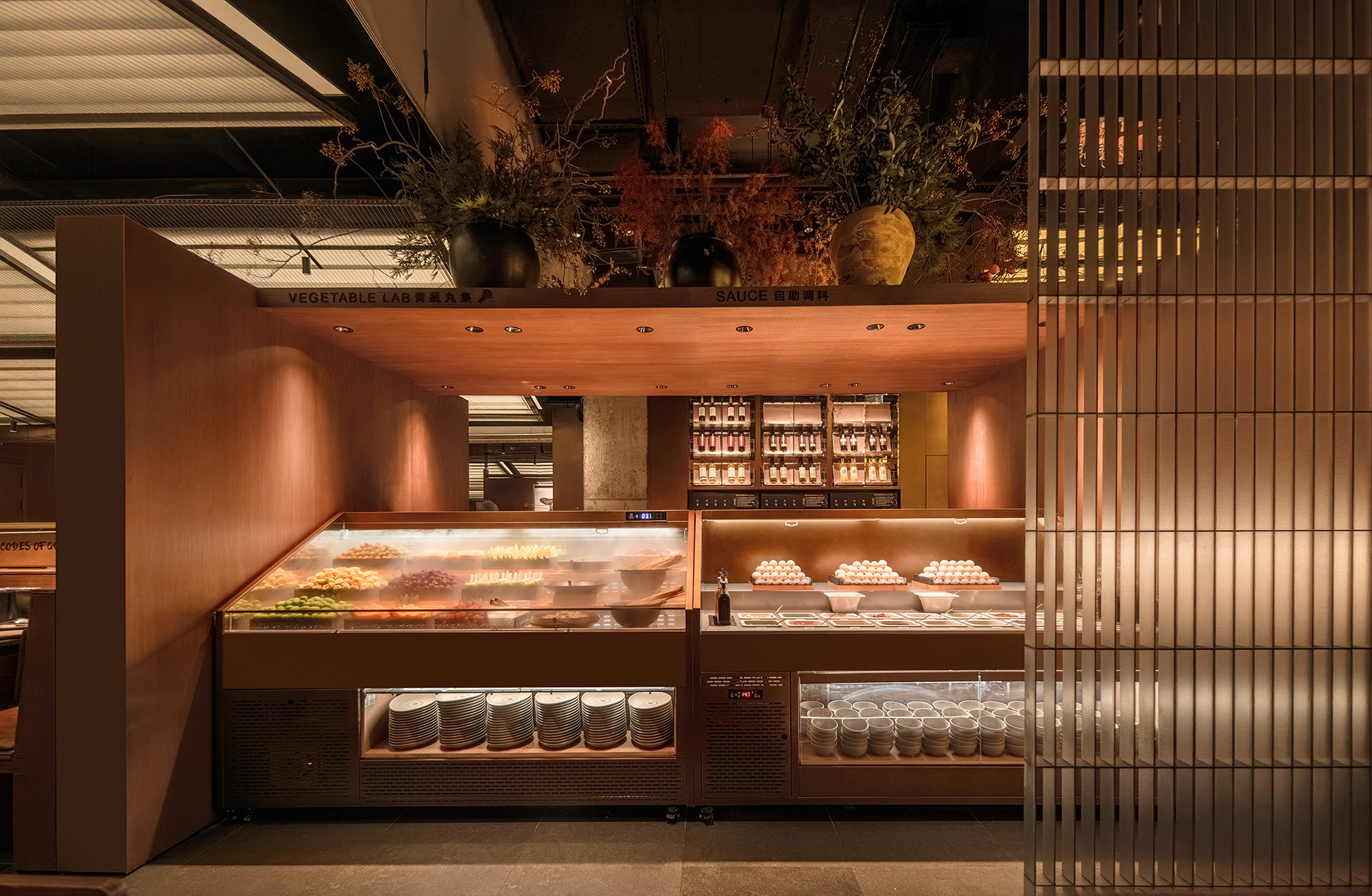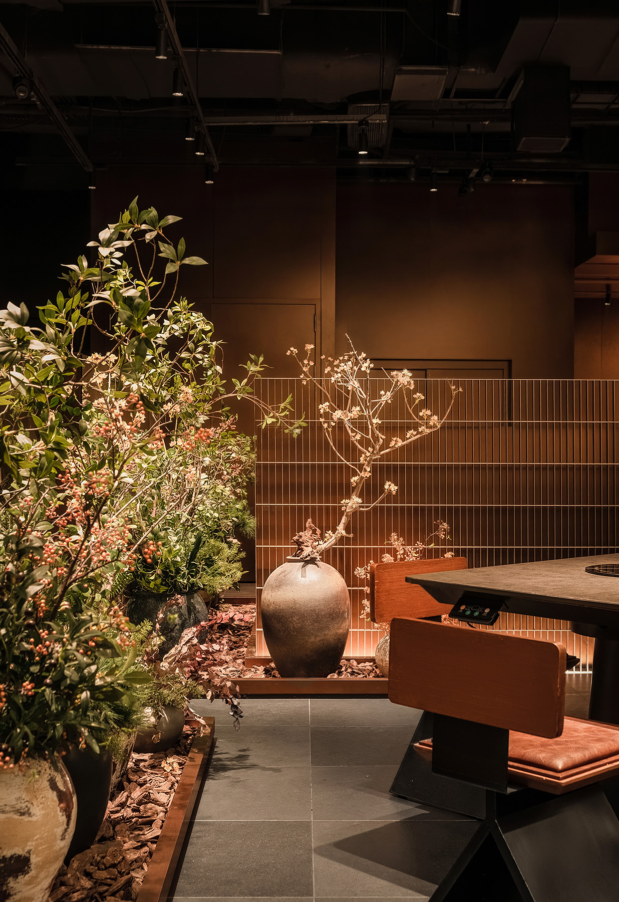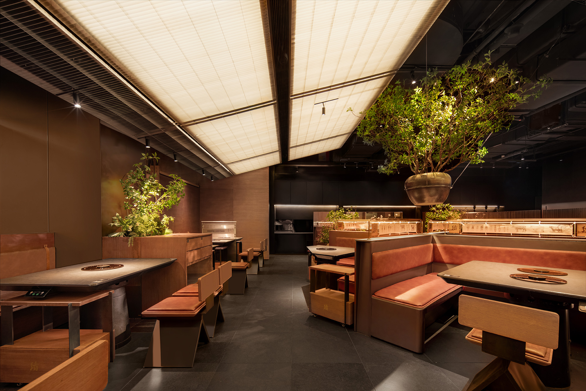 在「和牛工坊」概念店中,空间本身也成为叙事的载体,但相比较其他门店,该门店围绕更年轻、更轻盈自然的想象展开,我们希望专业变得可感知、可触摸、可沉浸,最终融入每一次举箸与交谈之间。