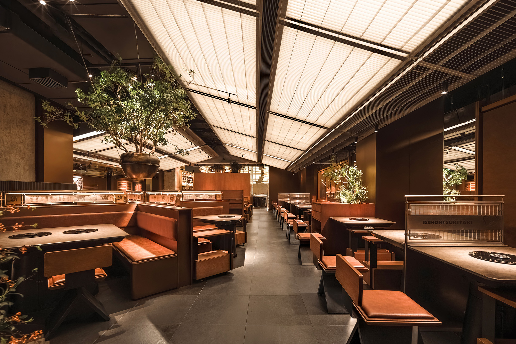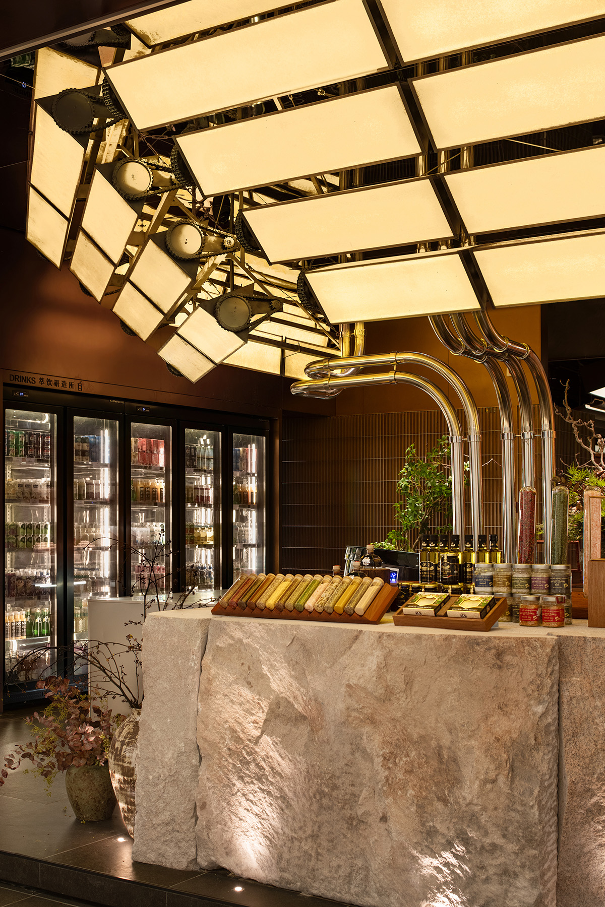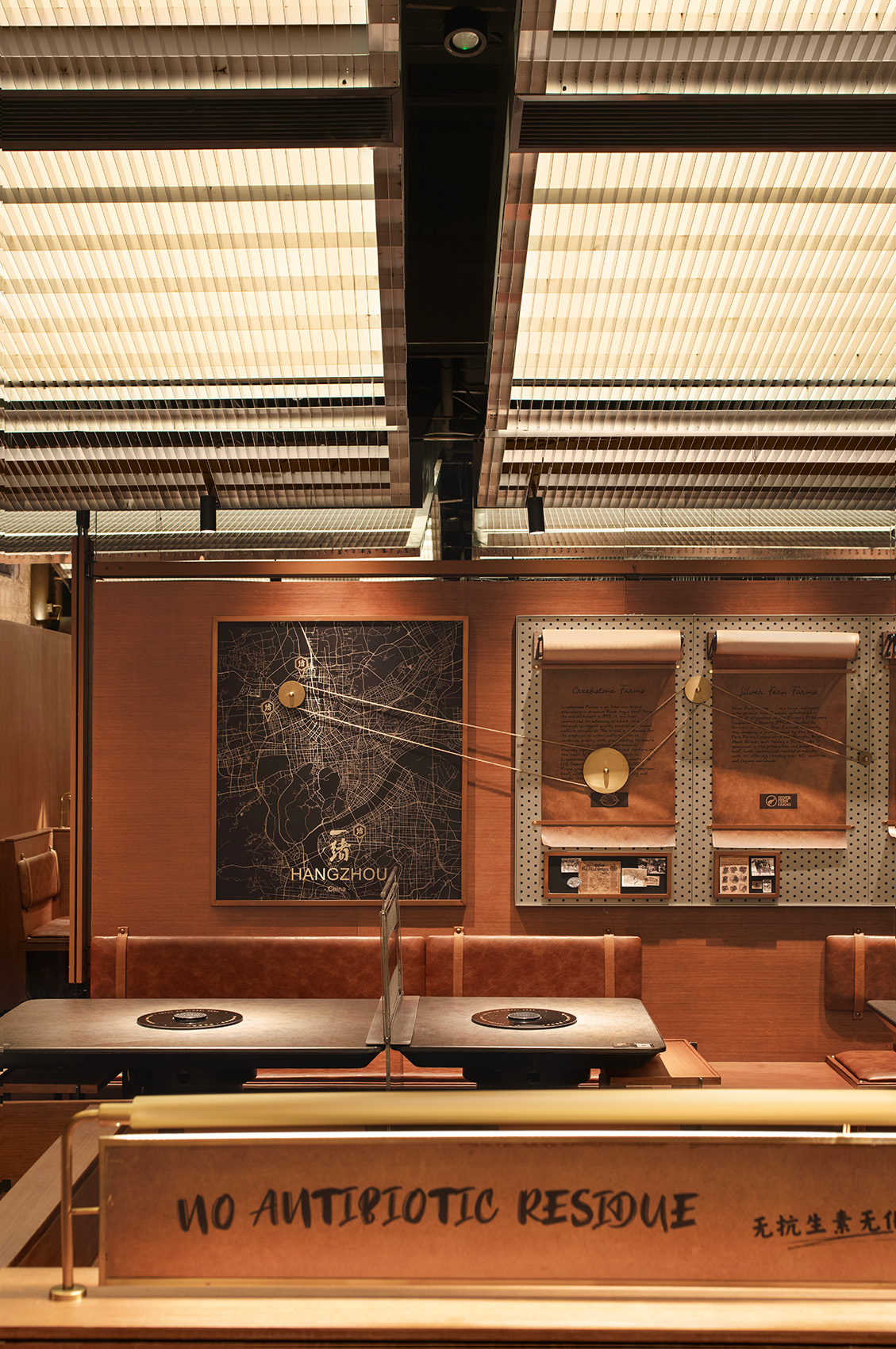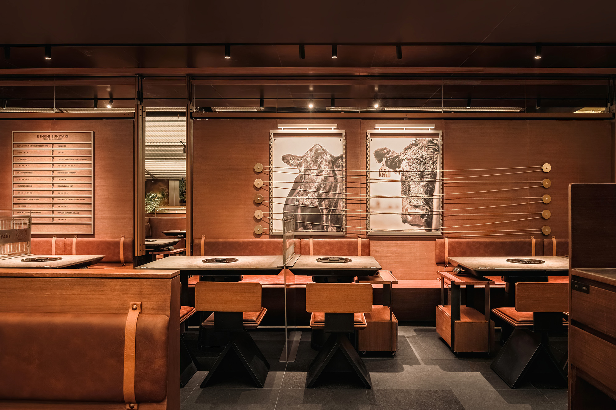 在「和牛工坊」概念店中,空间本身也成为叙事的载体,但相比较其他门店,该门店围绕更年轻、更轻盈自然的想象展开,我们希望专业变得可感知、可触摸、可沉浸,最终融入每一次举箸与交谈之间。